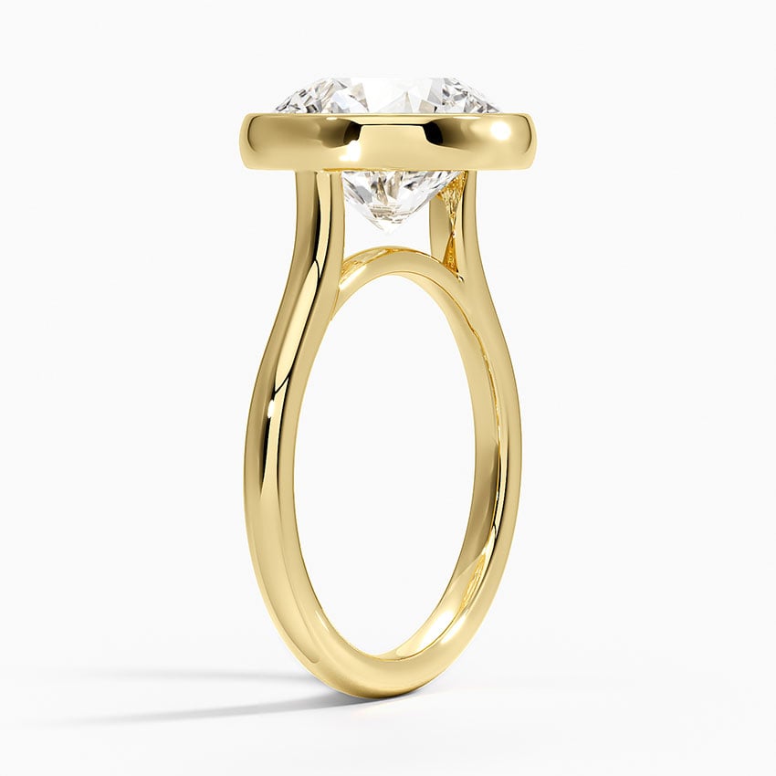 I have the 18K yellow gold Luna ring with a 1.51 carat H/VS2 diamond. This ring is so modern, understated, and practical for daily wear. The bezel protects the center stone while adding a cool, contemporary spin on a solitaire ring (added bonus: I never have to repair prongs.) Normally bezel settings cut down on a diamond's sparkle, but the elevated setting lets plenty of light through. This setting also lets me wear my engagement ring stacked perfectly over my wedding band. The Luna ring is a total standout without feeling too overwhelming for day-to-day wear. I don't feel like I need a diamond band with my solitaire-- this ring looks awesome with my plain 18K yellow gold rope band. Though it would look just as great with any band you already have! I get so many compliments on this ring and Brilliant Earth's commitment to sustainable and conflict-free diamonds is even better. 10/10 recommend the Luna ring.