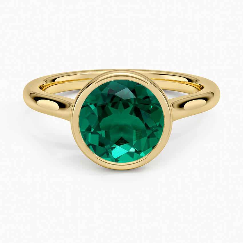 18K Yellow Gold Luna 2mm Bezel Ring with 12mm Round Lab Grown Emerald