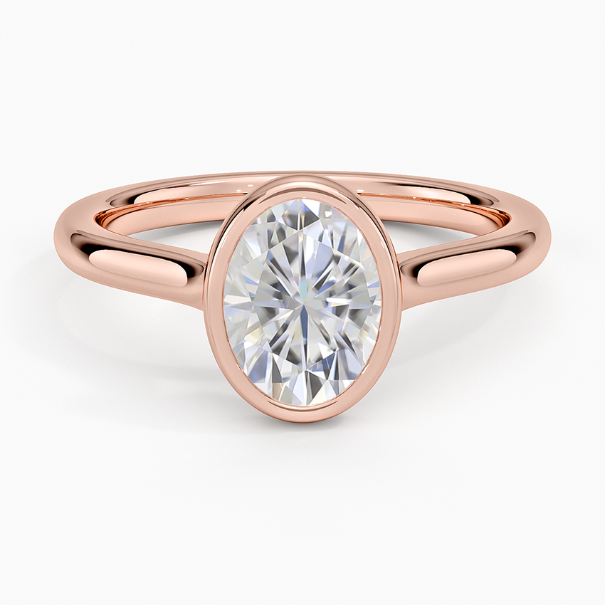 14K Rose Gold Luna 2mm Bezel Ring with 8x6mm Premium Oval Moissanite