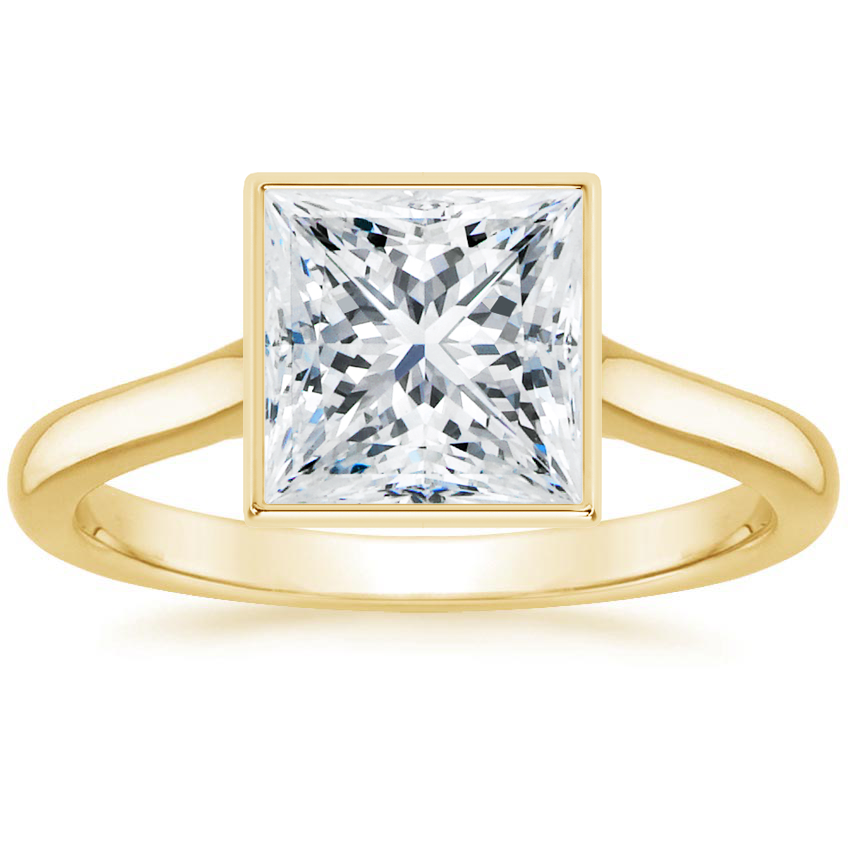 I have the 18K yellow gold Luna ring with a 1.51 carat H/VS2 diamond. This ring is so modern, understated, and practical for daily wear. The bezel protects the center stone while adding a cool, contemporary spin on a solitaire ring (added bonus: I never have to repair prongs.) Normally bezel settings cut down on a diamond's sparkle, but the elevated setting lets plenty of light through. This setting also lets me wear my engagement ring stacked perfectly over my wedding band. The Luna ring is a total standout without feeling too overwhelming for day-to-day wear. I don't feel like I need a diamond band with my solitaire-- this ring looks awesome with my plain 18K yellow gold rope band. Though it would look just as great with any band you already have! I get so many compliments on this ring and Brilliant Earth's commitment to sustainable and conflict-free diamonds is even better. 10/10 recommend the Luna ring.