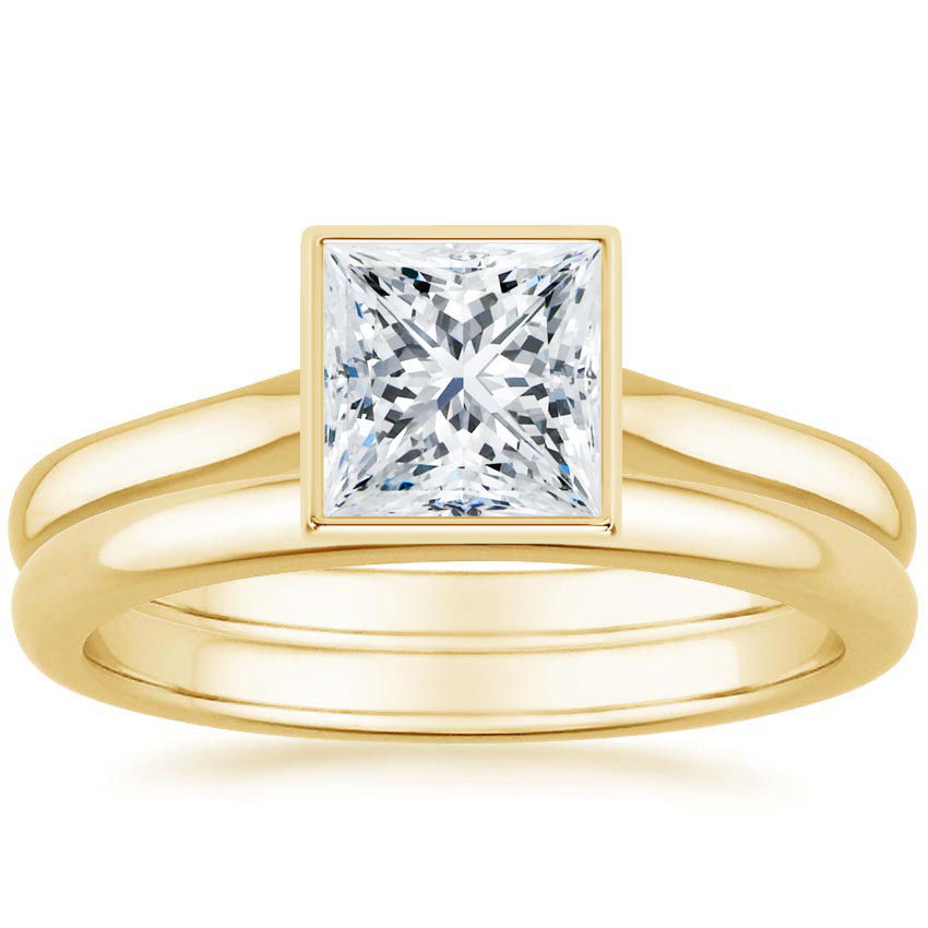 18K Yellow Gold Luna Bridal Set with 3.52 Carat Princess Lab Grown Diamond