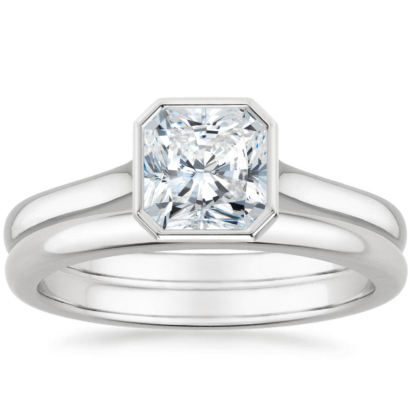 This beautiful modern ring features a bezel set center gem with a sleek band for a contemporary look. The elevated bezel allows for maximum light play, while a smooth 2mm comfort fit wedding band sits perfectly flush. ... Read More