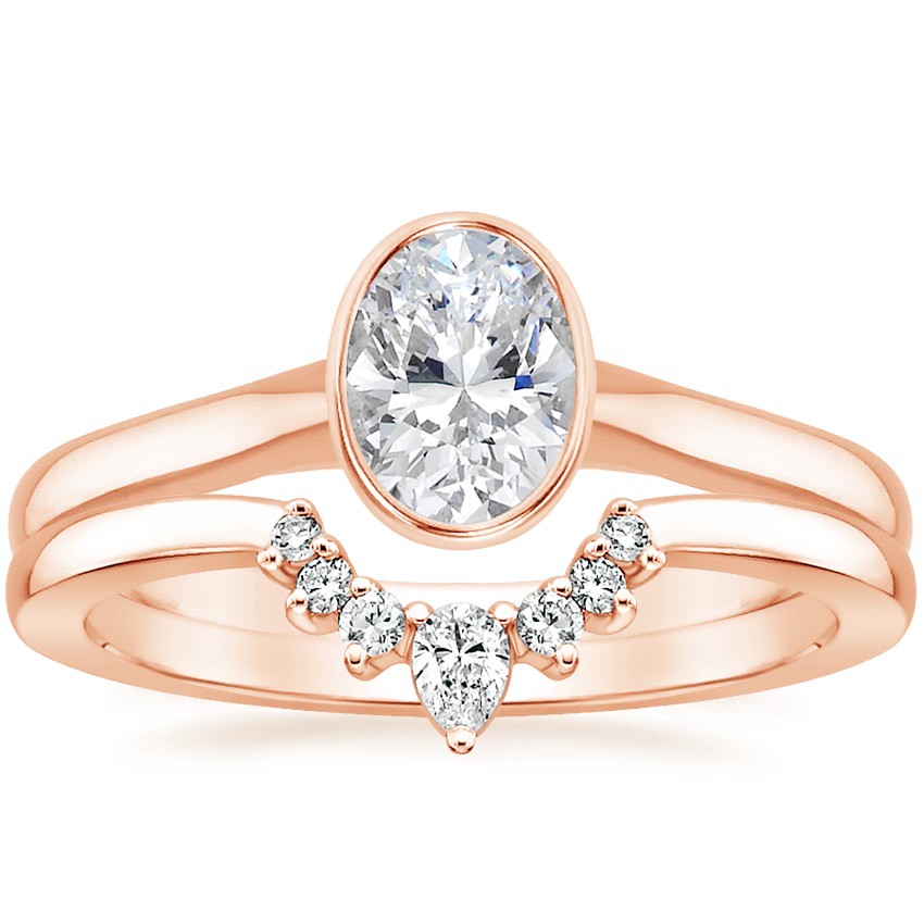 14K Rose Gold Luna Ring with Lunette Diamond Ring with 0.51 Carat Oval Diamond