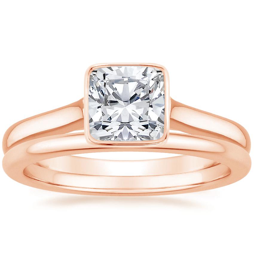 14K Rose Gold Luna Ring with Petite Comfort Fit Wedding Ring