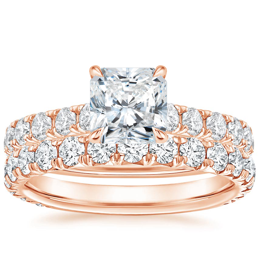 14K Rose Gold Luxe Anthology Lab Diamond Bridal Set with 3.05 Carat Radiant Lab Grown Diamond