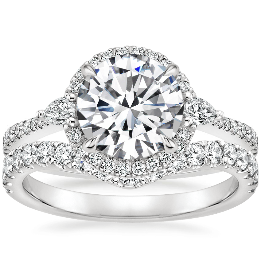 Platinum Luxe Aria Halo Diamond Ring (1/4 ct. tw.) with Luxe Flair Diamond Ring (1/3 ct. tw.)