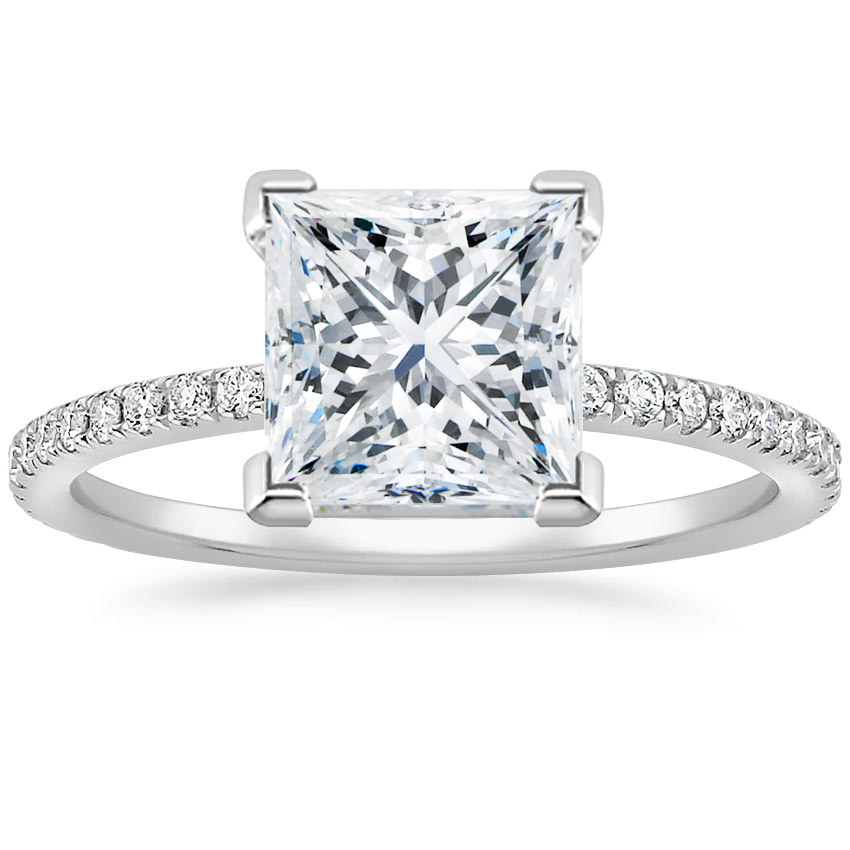 My fiancé surprised me with a proposal on our vacation to San Francisco and I was floored by how well he did choosing my ring. It doesn't matter what lighting I'm in, it sparkles like you wouldn't believe! I constantly see people admiring it when I'm out shopping and the most heard comment I get is "WOW! He did good!" I'm absolutely in love with it. The delicate stones on the sides are very comfortable against my fingers and it doesn't rotate much at all. The band stones are quite small, which I personally LOVE, but they have as much brilliance as the center stone. And let me just say, high clarity and its colorless qualities make all the difference. I'd highly recommend this ring!