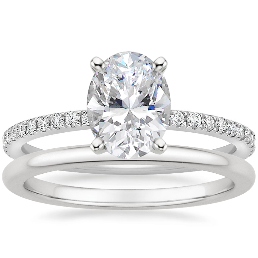Luxe Ballad Diamond Ring (1/4 ct. tw.) with Petite Comfort Fit Wedding Ring in 18K White Gold