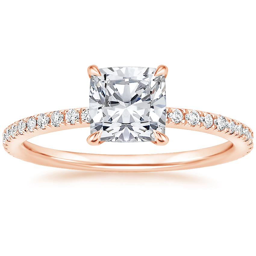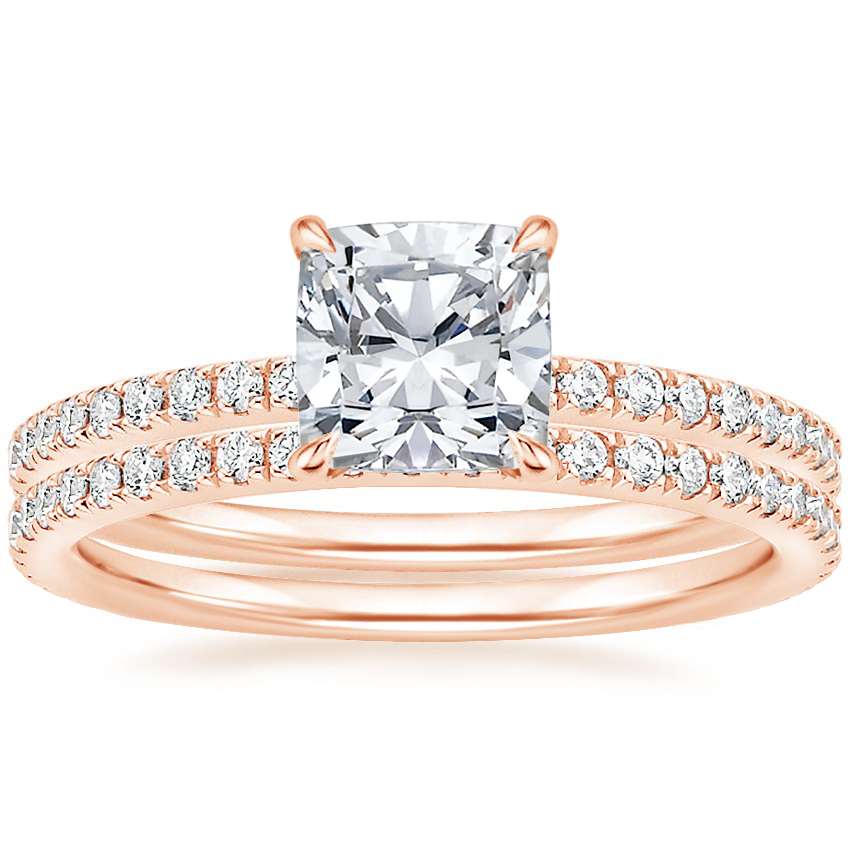 14K Rose Gold Luxe Ballad Perfect Fit Lab Diamond Bridal Set with 0.75 Carat Cushion Lab Grown Diamond