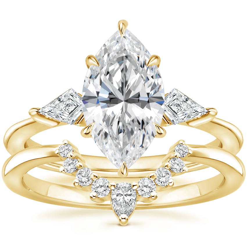 Luxe Cometa Diamond Ring (1/3 ct. tw.) with Elongated Lunette Diamond Ring (1/8 ct. tw.) in 18K Yellow Gold