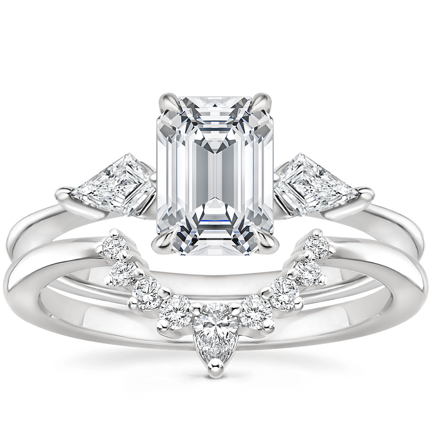 Platinum Luxe Cometa Diamond Ring (1/3 ct. tw.) with Elongated Lunette Diamond Ring (1/8 ct. tw.)