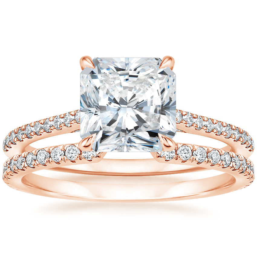 14K Rose Gold Luxe Dawn Lab Diamond Ring with Luxe Sia Diamond Open Ring (1/5 ct. tw.) with 4.02 Carat Radiant Lab Grown Diamond