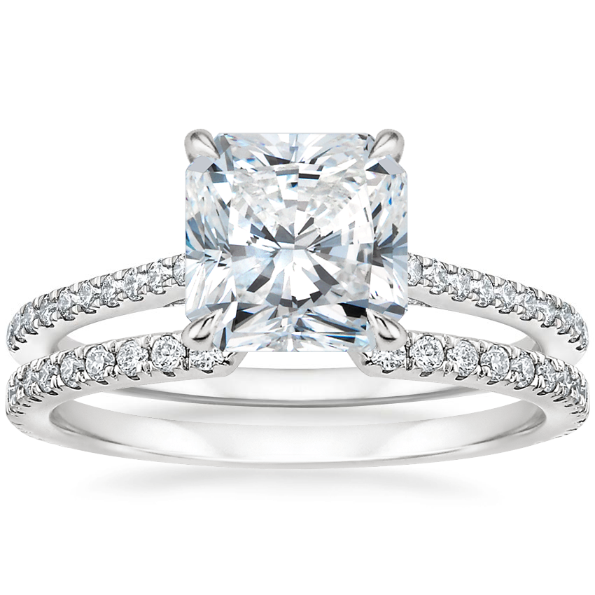 18K White Gold Luxe Dawn Lab Diamond Ring with Luxe Sia Diamond Open Ring (1/5 ct. tw.) with 4.02 Carat Radiant Lab Grown Diamond