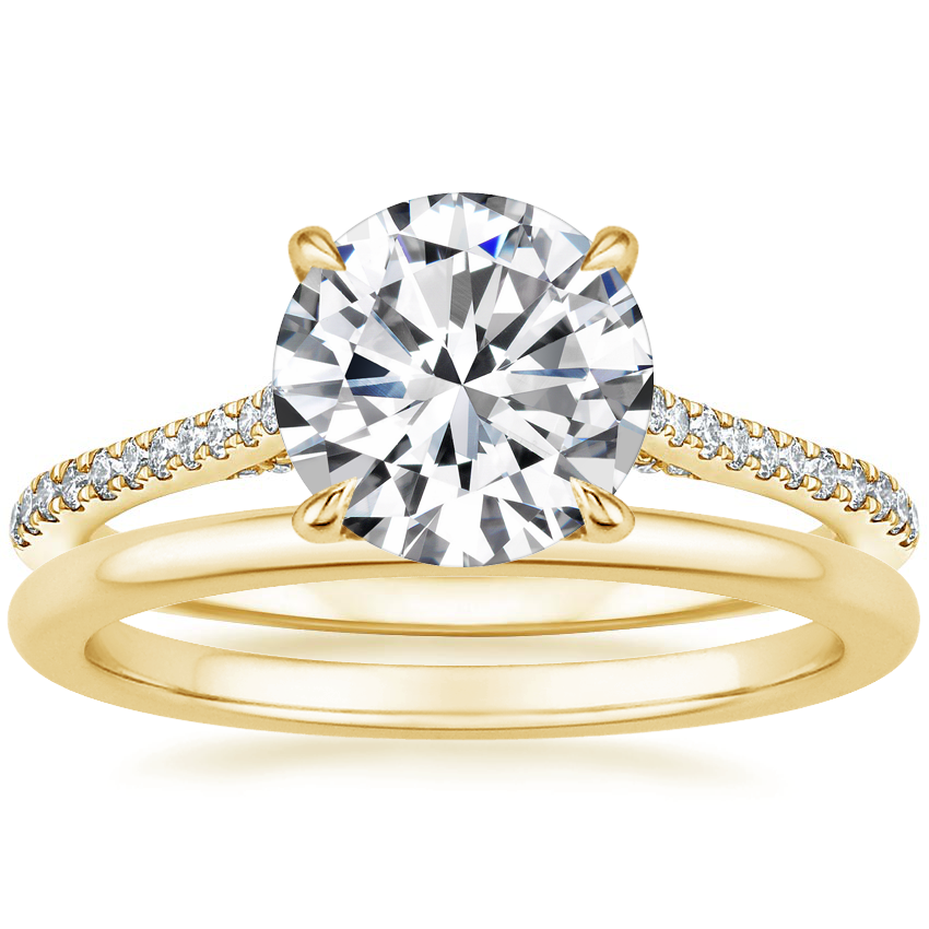 18K Yellow Gold Luxe Dawn Lab Diamond Ring with Petite Comfort Fit Wedding Ring with 1.0 Carat Round Lab Grown Diamond