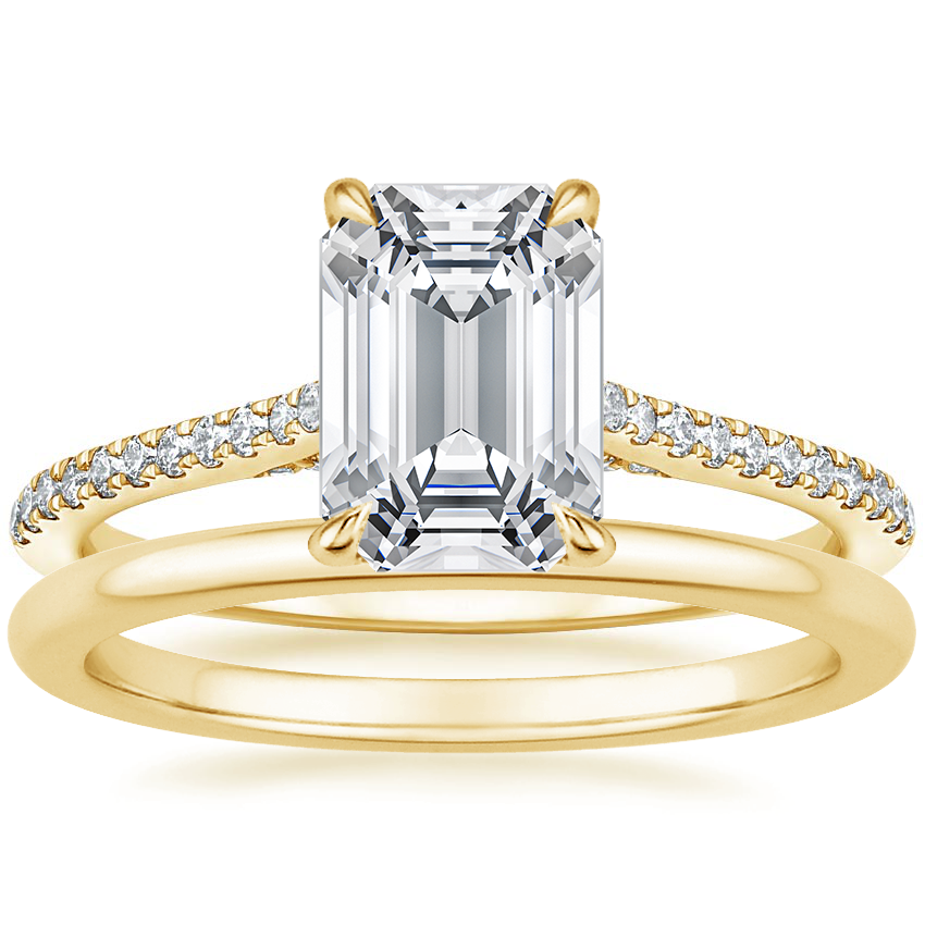 18K Yellow Gold Luxe Dawn Diamond Ring with Petite Comfort Fit Wedding Ring