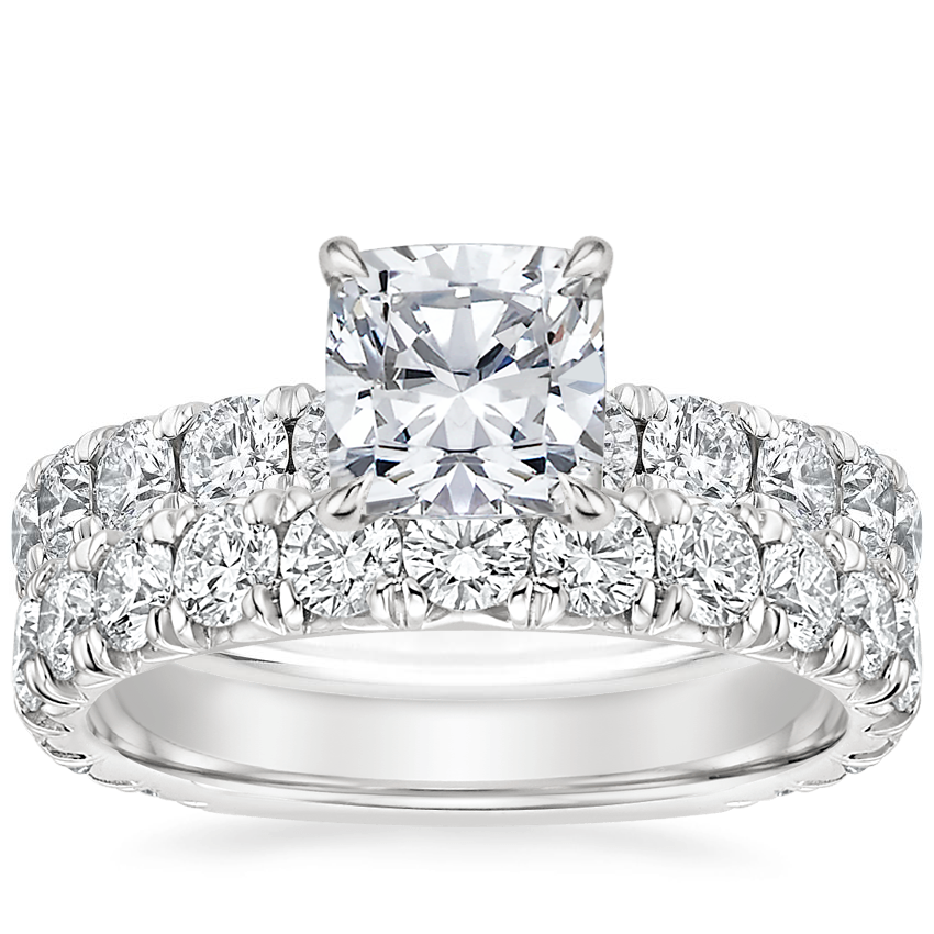 The ring size of an eternity ring determines its total carat weight. The total carat weight range reflects the difference in total carat weight between sizes. Learn more about carat weight information.