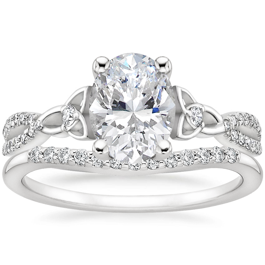 Platinum Luxe Entwined Celtic Love Knot Diamond Ring with Petite Curved Diamond Ring (1/10 ct. tw.)
