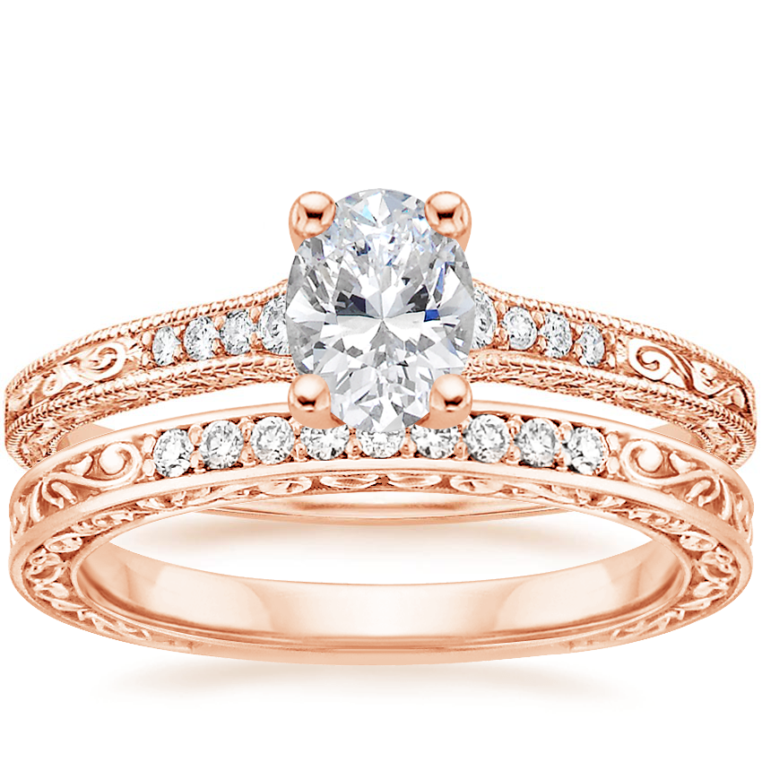 14K Rose Gold Luxe Hudson Diamond Ring (1/10 ct. tw.) with Delicate Antique Scroll Diamond Ring (1/15 ct. tw.)