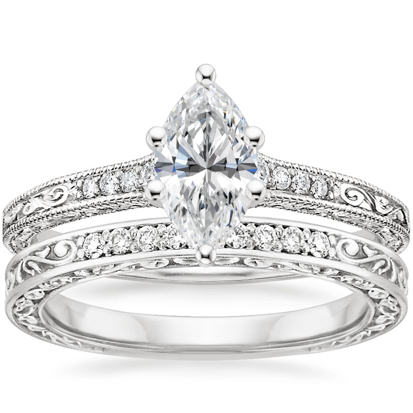 18K White Gold Luxe Hudson Diamond Ring (1/10 ct. tw.) with Delicate Antique Scroll Diamond Ring (1/15 ct. tw.)