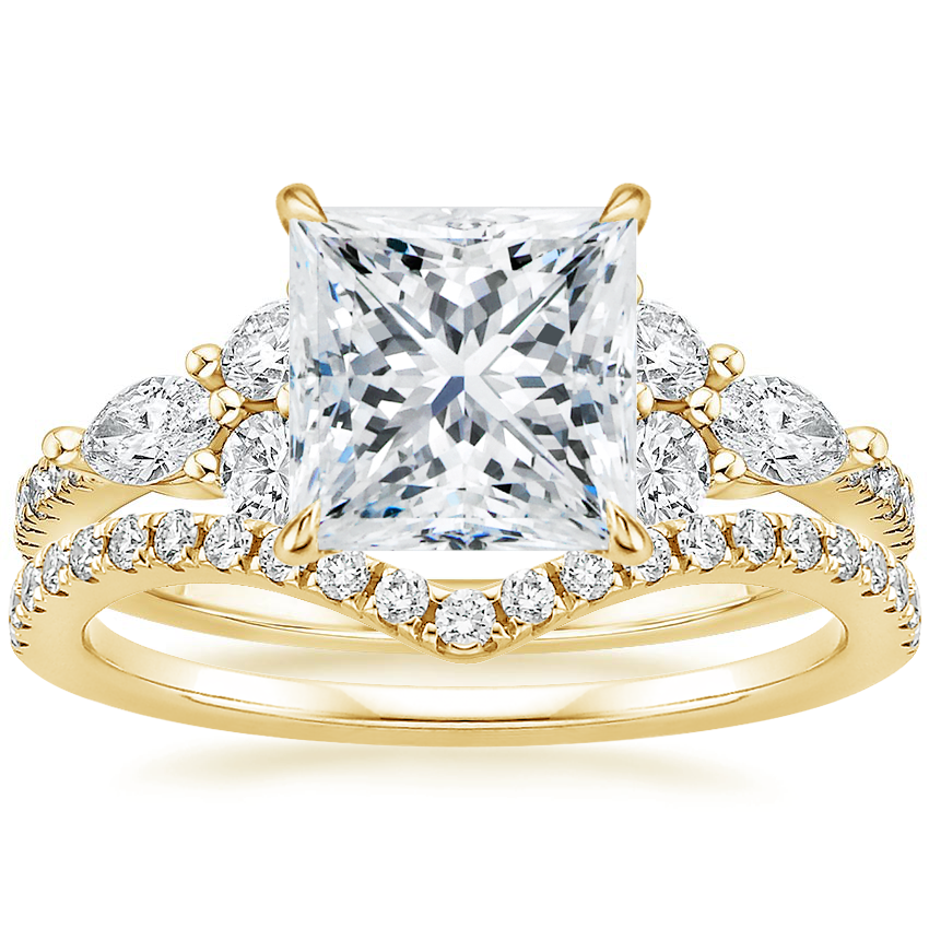18K Yellow Gold Luxe Nadia Lab Diamond Ring (1/2 ct. tw.) with Flair Diamond Ring (1/6 ct. tw.) with 1.0 Carat Princess Lab Grown Diamond