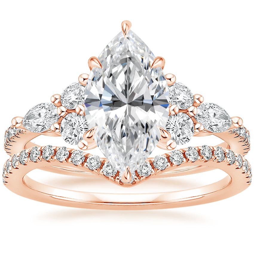 14K Rose Gold Luxe Nadia Diamond Ring (1/2 ct. tw.) with Flair Diamond Ring (1/6 ct. tw.)