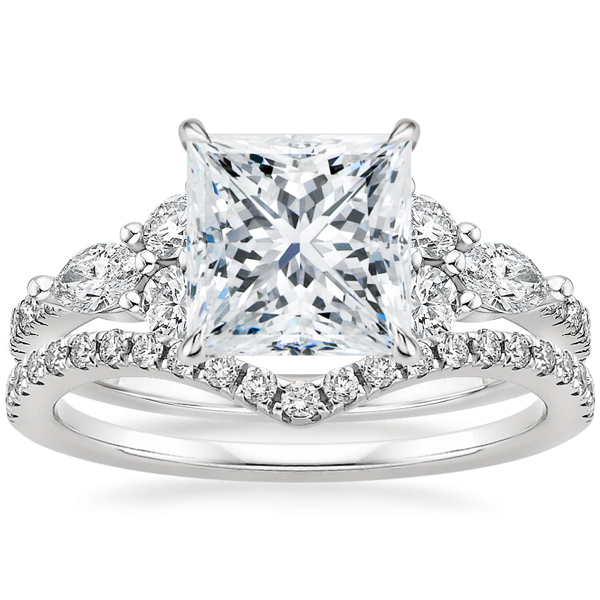 18K White Gold Luxe Nadia Lab Diamond Ring (1/2 ct. tw.) with Flair Diamond Ring (1/6 ct. tw.) with 1.0 Carat Princess Lab Grown Diamond