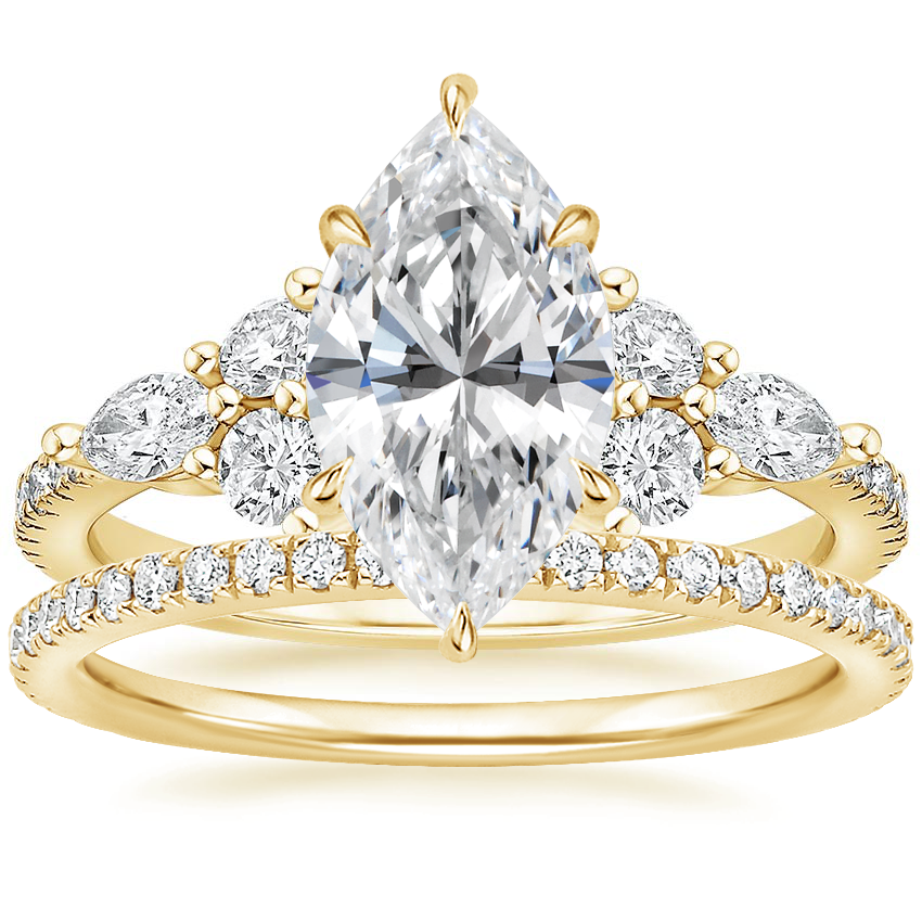 18K Yellow Gold Luxe Nadia Lab Diamond Ring (1/2 ct. tw.) with Luxe Ballad Diamond Ring (1/4 ct. tw.) with 2.8 Carat Marquise Lab Grown Diamond
