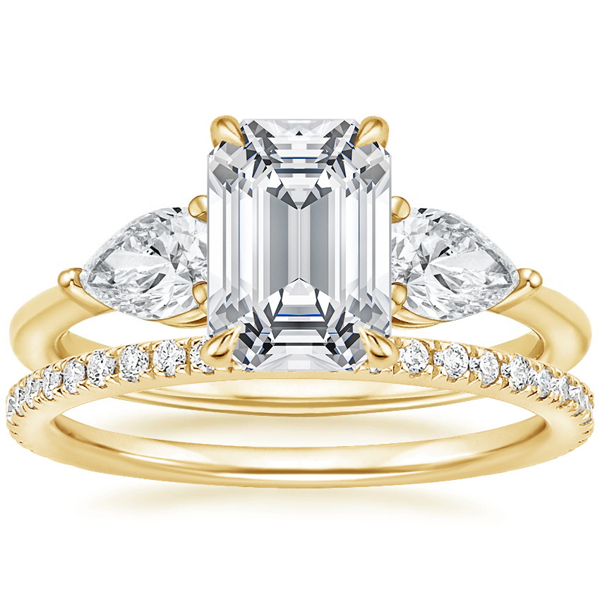 18K Yellow Gold Luxe Opera Three Stone Diamond Ring with Luxe Ballad Diamond Ring (1/4 ct. tw.)