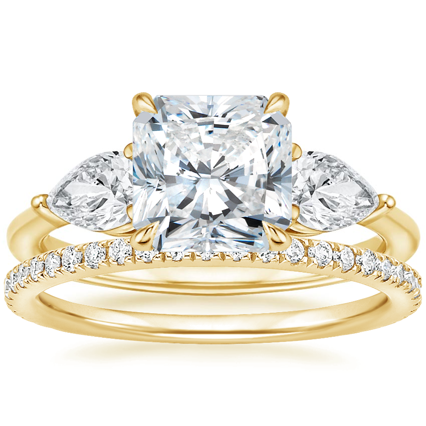 18K Yellow Gold Luxe Opera Three Stone Diamond Ring with Luxe Ballad Diamond Ring (1/4 ct. tw.)