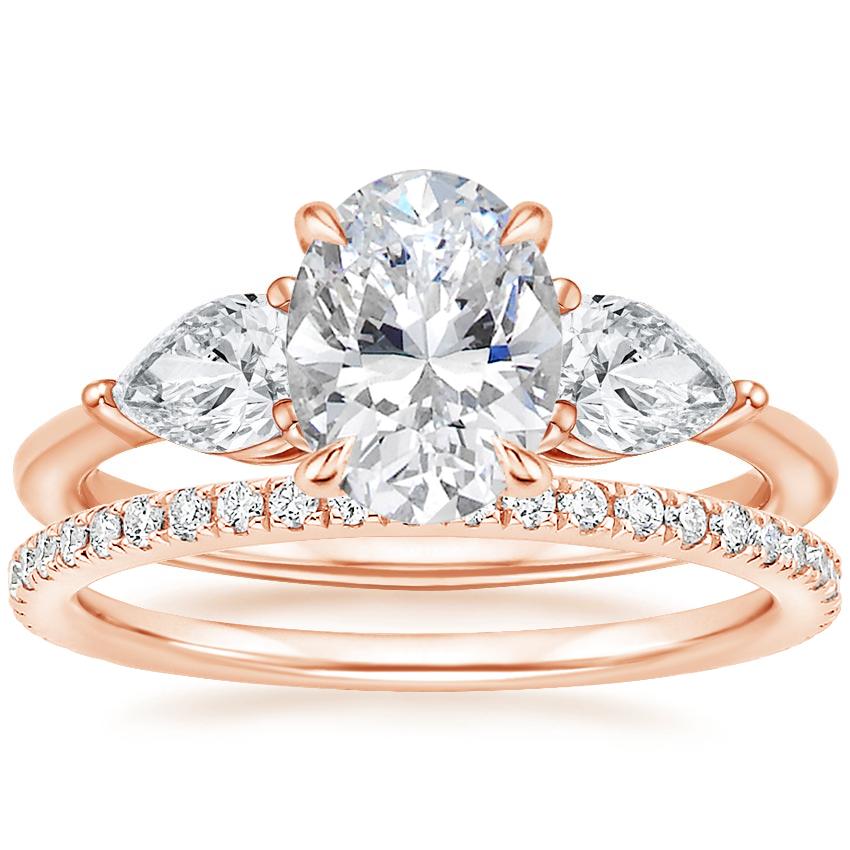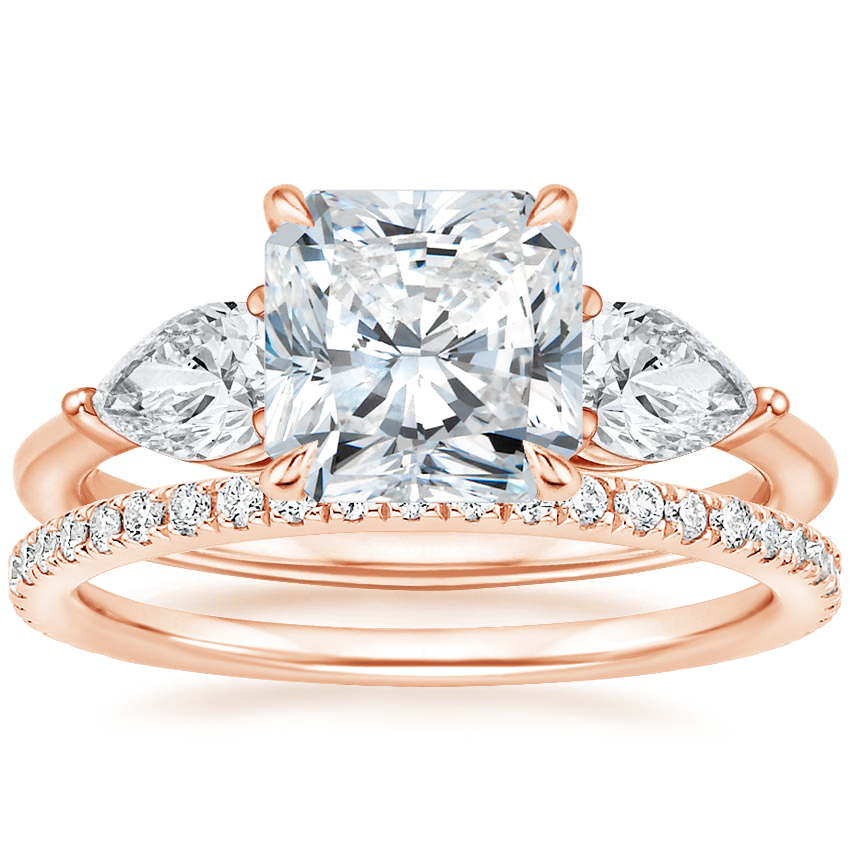 14K Rose Gold Luxe Opera Three Stone Diamond Ring with Luxe Ballad Diamond Ring (1/4 ct. tw.)