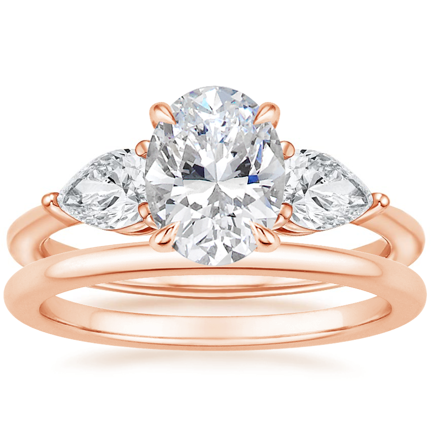 14K Rose Gold Luxe Opera Three Stone Diamond Ring with Petite Comfort Fit Wedding Ring