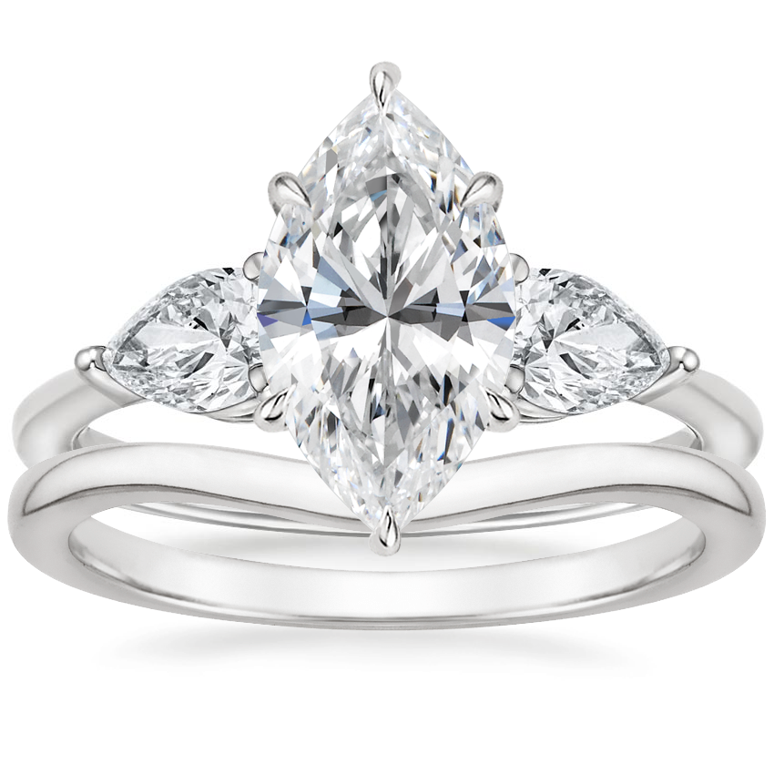 Platinum Luxe Opera Three Stone Diamond Ring with Petite Curved Wedding Ring