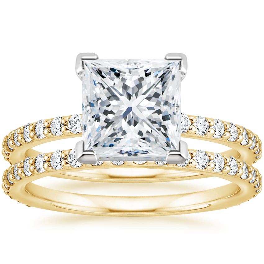 18K Yellow Gold Luxe Petite Shared Prong Lab Diamond Bridal Set (3/4 ct. tw.) with 3.03 Carat Princess Lab Grown Diamond