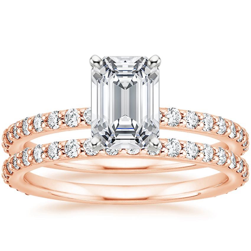 14K Rose Gold Luxe Petite Shared Prong Diamond Bridal Set (3/4 ct. tw.) with 0.31 Carat Emerald Diamond