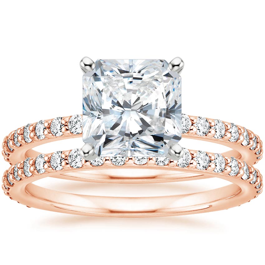 14K Rose Gold Luxe Petite Shared Prong Lab Diamond Bridal Set (3/4 ct. tw.) with 2.07 Carat Radiant Lab Grown Diamond