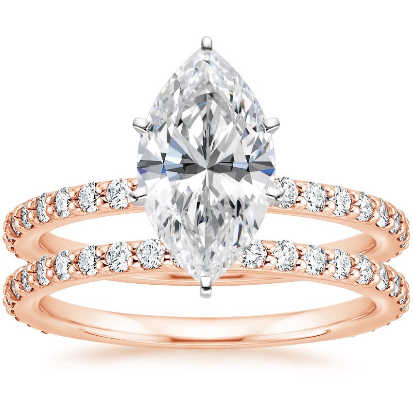 14K Rose Gold Luxe Petite Shared Prong Diamond Bridal Set (3/4 ct. tw.) with 1.01 Carat Marquise Diamond