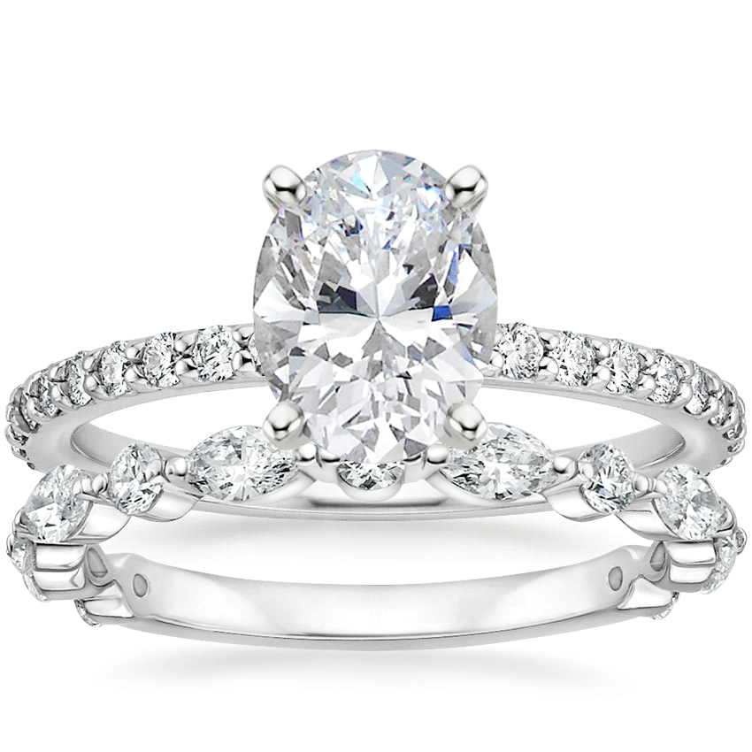 18K White Gold Luxe Petite Shared Prong Diamond Ring (1/3 ct. tw.) with Luxe Versailles Diamond Ring (1/2 ct. tw.)