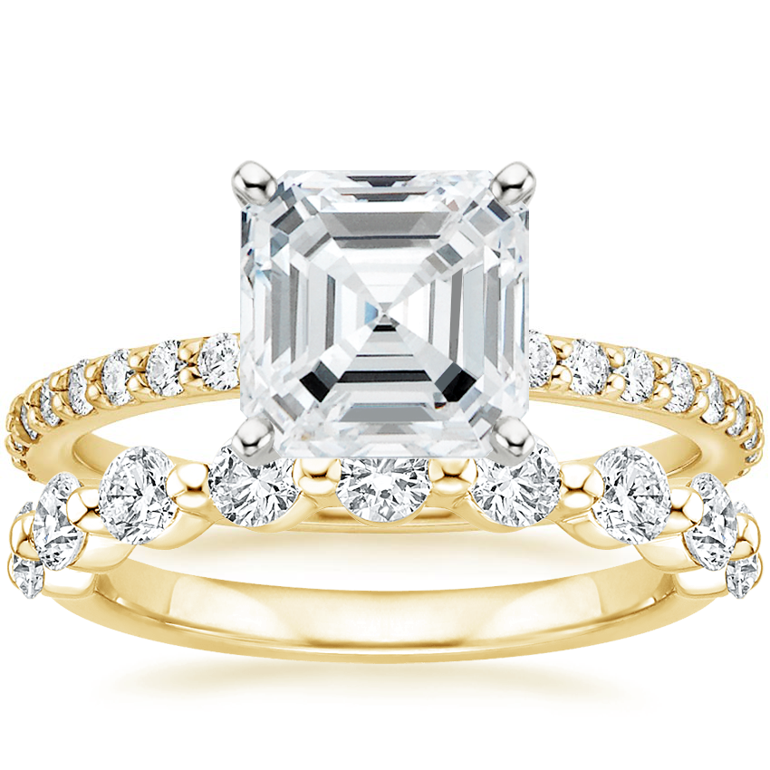 Luxe Petite Shared Prong Diamond Ring (1/3 ct. tw.) with Monaco Diamond Ring (3/4 ct. tw.) in 14K Yellow Gold