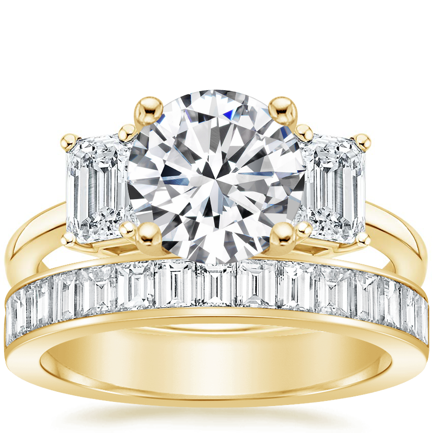 18K Yellow Gold Luxe Rhiannon Diamond Ring (3/4 ct. tw.) with Channel Set Baguette Diamond Ring (1 ct. tw.)