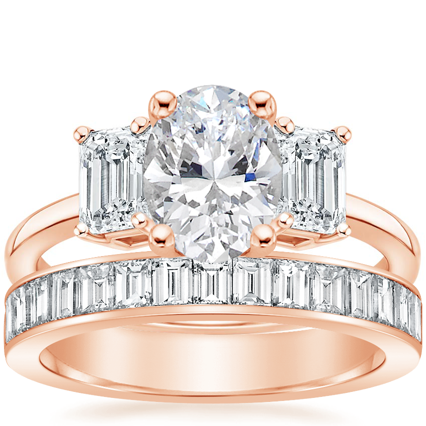 14K Rose Gold Luxe Rhiannon Diamond Ring (3/4 ct. tw.) with Channel Set Baguette Diamond Ring (1 ct. tw.)