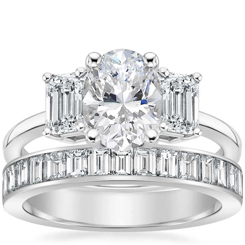 18K White Gold Luxe Rhiannon Diamond Ring (3/4 ct. tw.) with Channel Set Baguette Diamond Ring (1 ct. tw.)