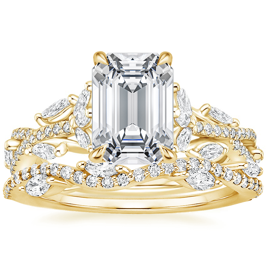 18K Yellow Gold Luxe Secret Garden Diamond Ring (3/4 ct. tw.) with Luxe Winding Willow Diamond Ring (1/4 ct. tw.) with 2.0 Carat Emerald Diamond