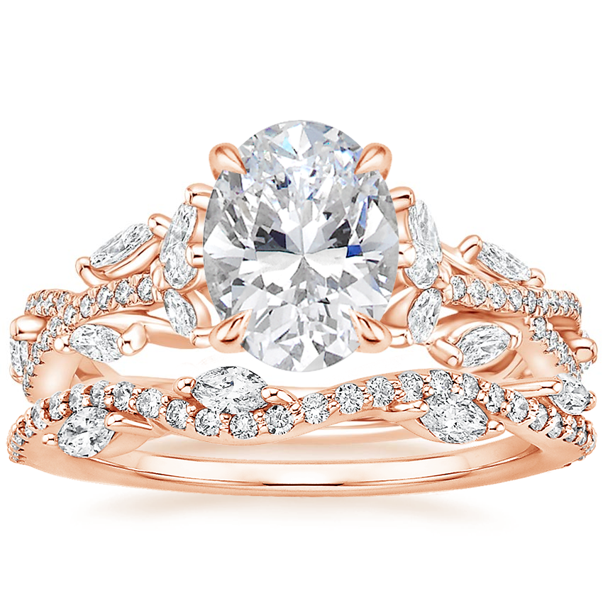 14K Rose Gold Luxe Secret Garden Diamond Ring (3/4 ct. tw.) with Luxe Winding Willow Diamond Ring (1/4 ct. tw.)