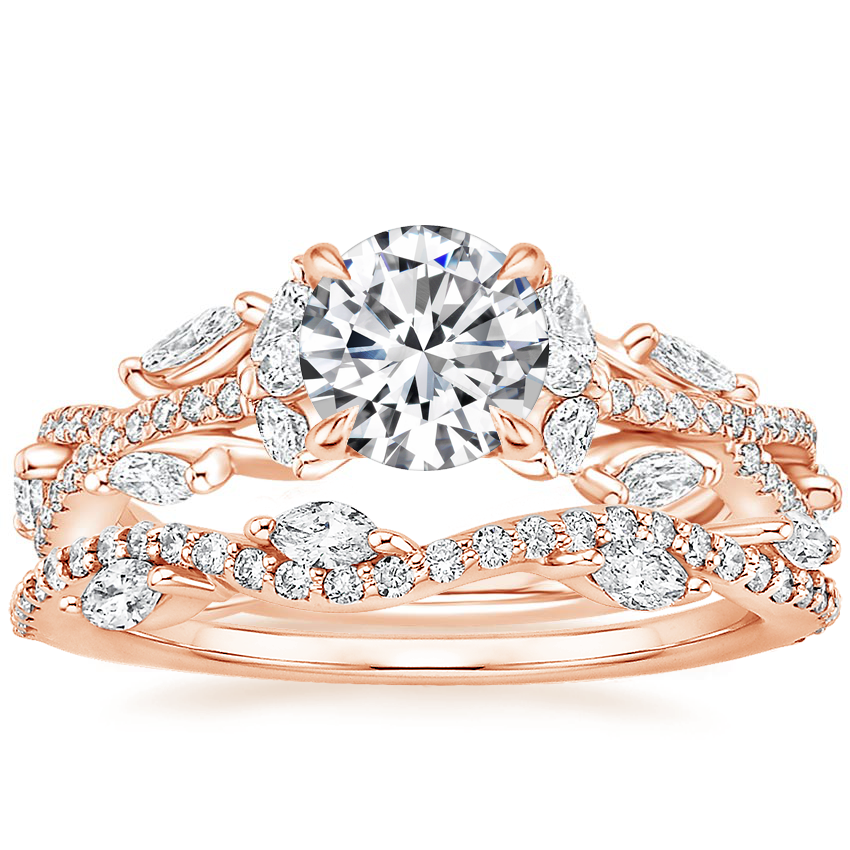 14K Rose Gold Luxe Secret Garden Diamond Ring (3/4 ct. tw.) with Luxe Winding Willow Diamond Ring (1/4 ct. tw.)
