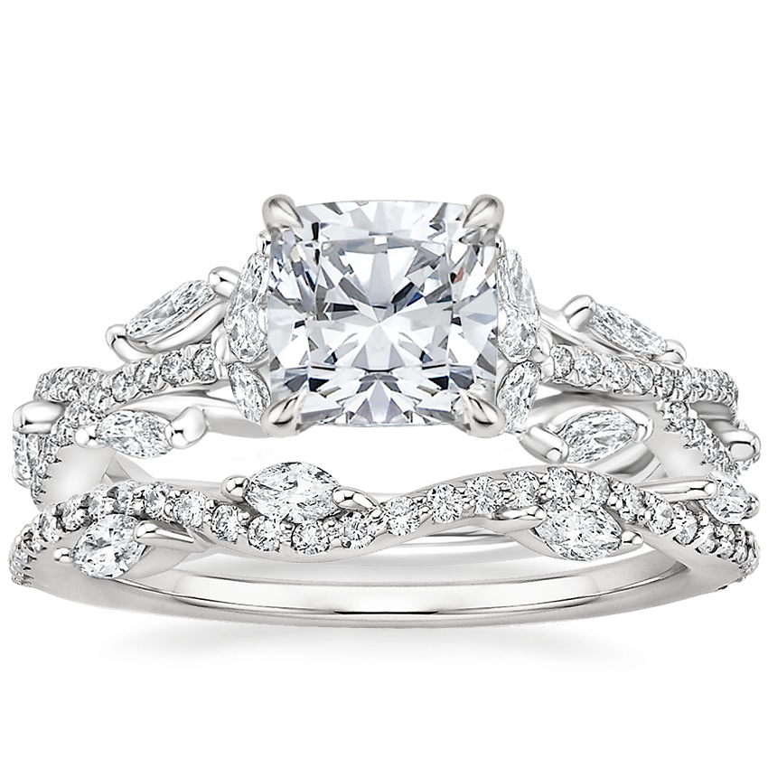 18K White Gold Luxe Secret Garden Diamond Ring (3/4 ct. tw.) with Luxe Winding Willow Diamond Ring (1/4 ct. tw.)