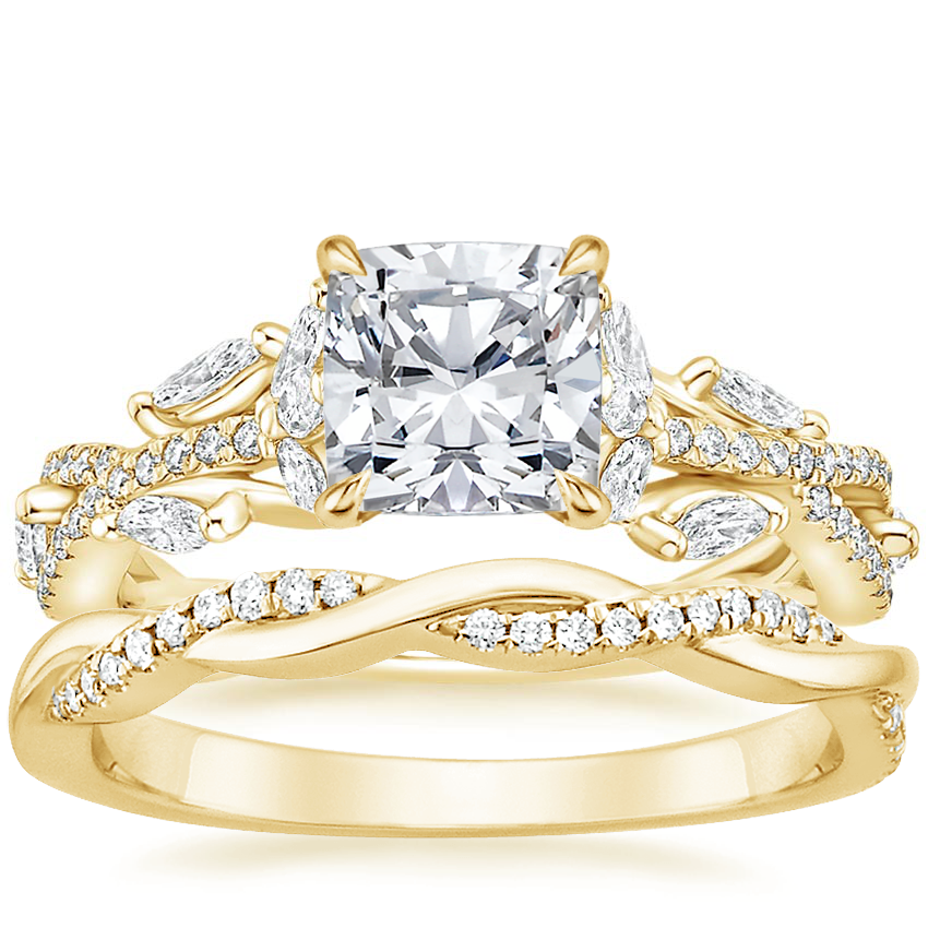18K Yellow Gold Luxe Secret Garden Diamond Ring (3/4 ct. tw.) with Petite Twisted Vine Diamond Ring (1/8 ct. tw.)