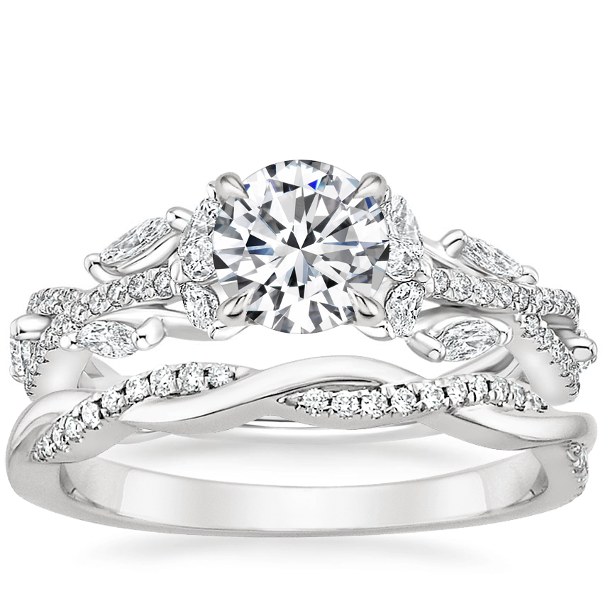 18K White Gold Luxe Secret Garden Diamond Ring (3/4 ct. tw.) with Petite Twisted Vine Diamond Ring (1/8 ct. tw.)