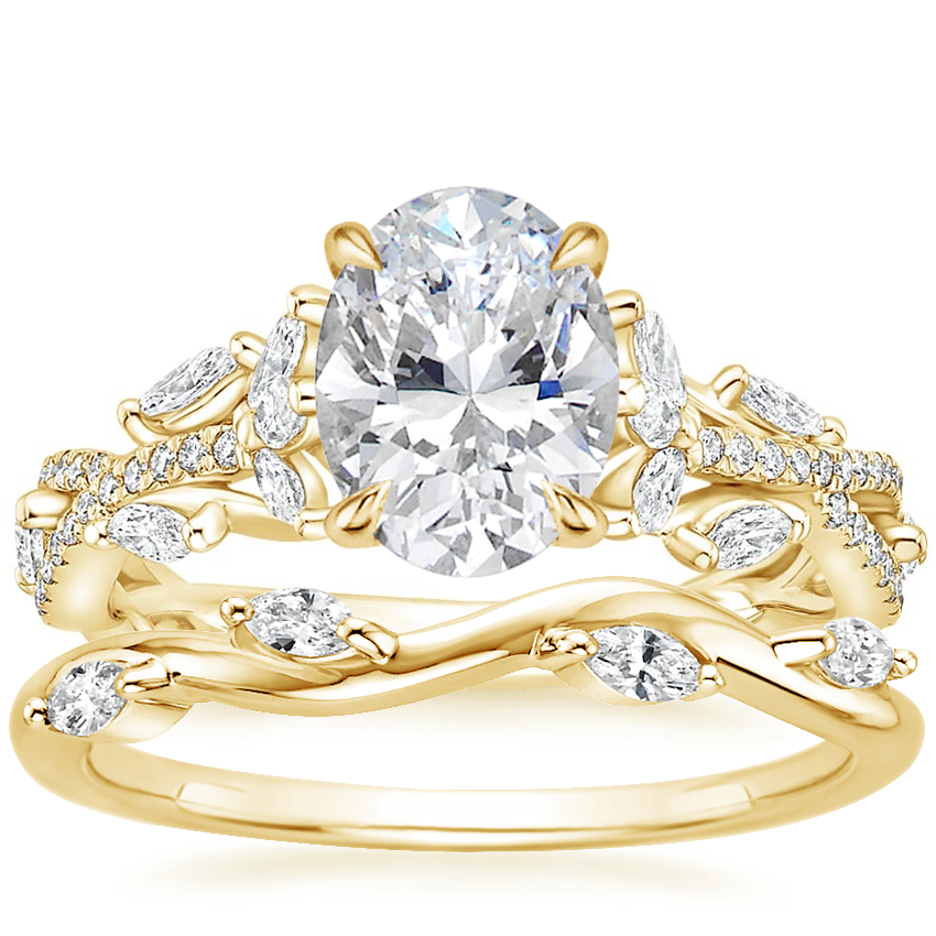 18K Yellow Gold Luxe Secret Garden Diamond Ring (3/4 ct. tw.) with Winding Willow Diamond Ring with 1.0 Carat Oval Diamond