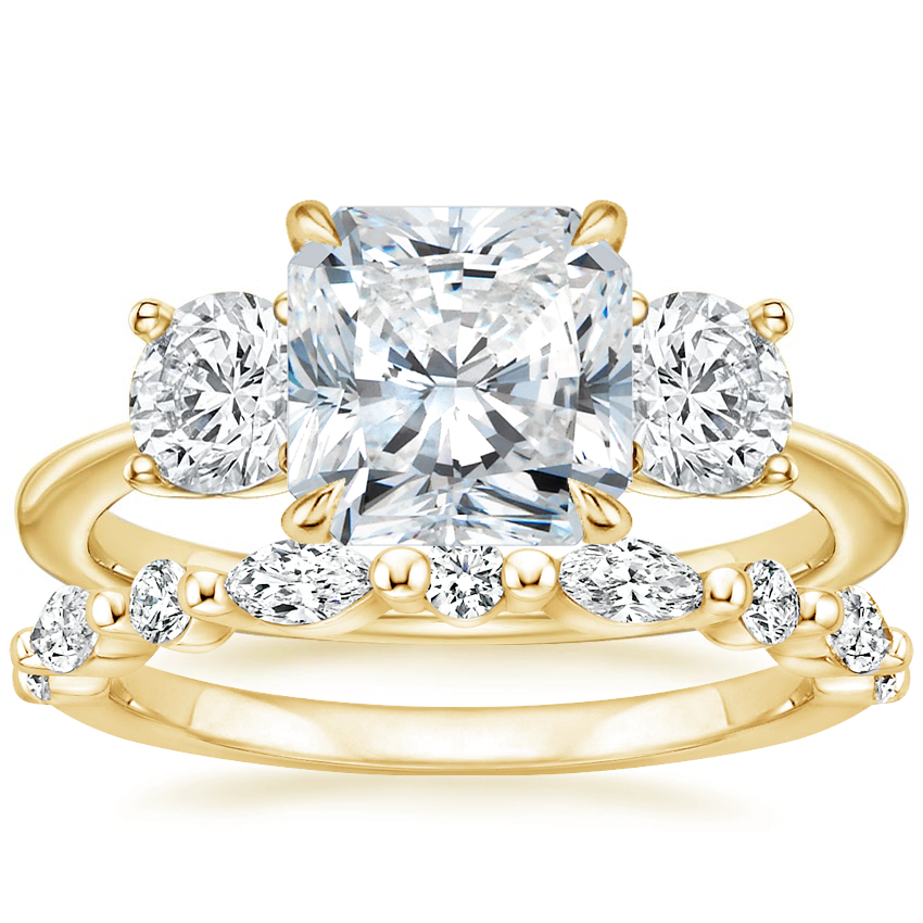 18K Yellow Gold Luxe Selene Three Stone Diamond Ring (2/3 ct. tw.) with Versailles Diamond Ring (3/8 ct. tw.)