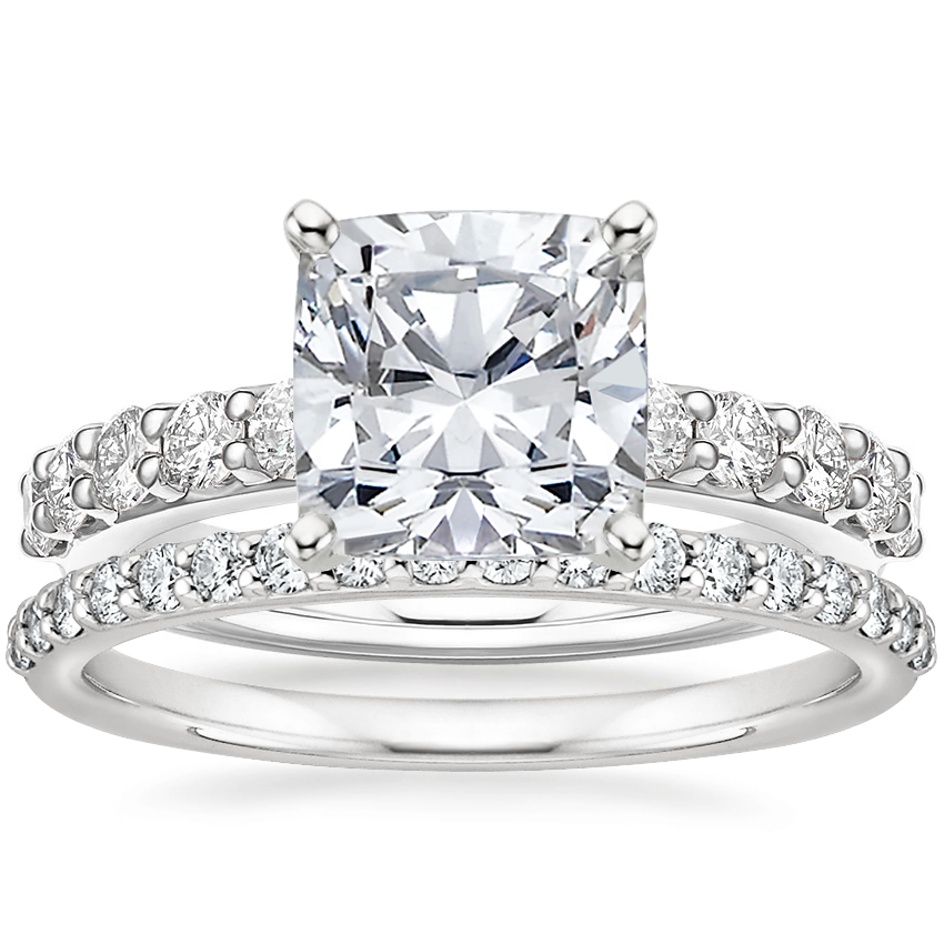 18K White Gold Luxe Shared Prong Diamond Ring (1/2 ct. tw.) with Petite Shared Prong Diamond Ring (1/4 ct. tw.)